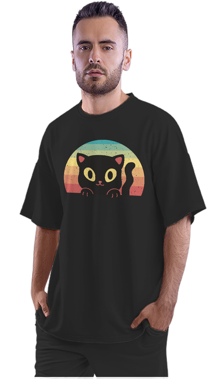 Black Cat - Retro Sunset Oversized Unisex T-shirt