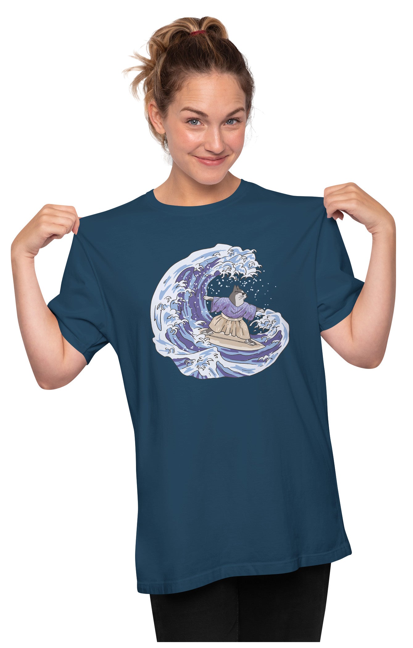 Japanese Cat Surfing Great Wave Oversized Unisex T-shirt