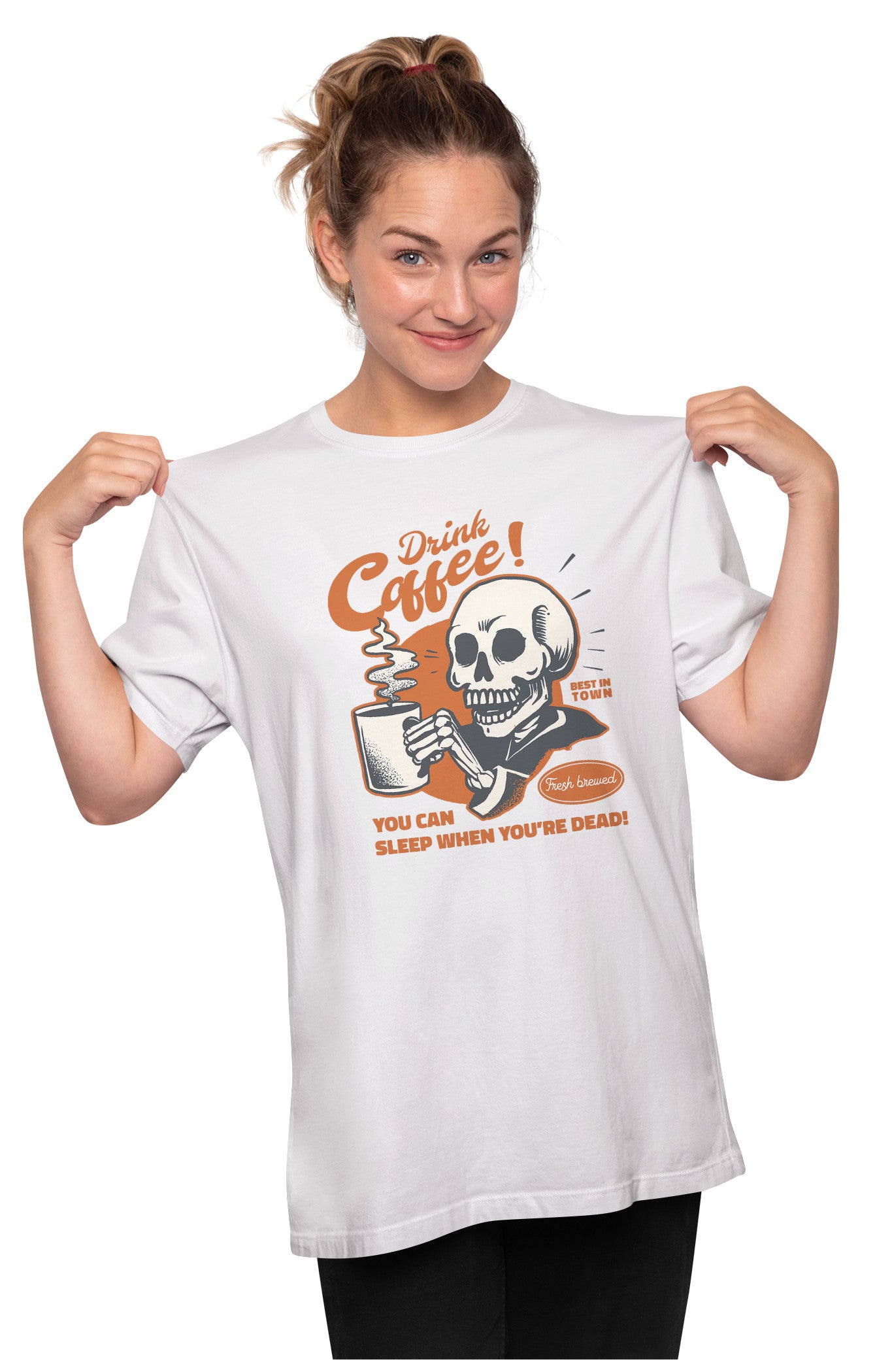 Vintage Coffee Loving Skeleton - Funny Quote Oversized Unisex T-shirt